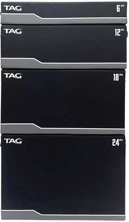 • Vinyl covered foam to help prevent injury • Customize your own plyo box height • Velcro straps on 2 sides for added security • Only sold in a set of 4 (6”, 12”, 18”, 24”) • 36”W x 61.25”H x 30”D • Color: Black