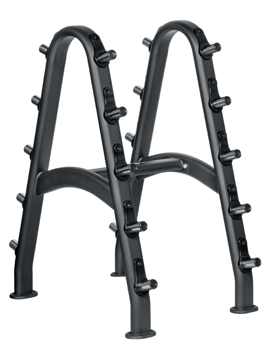 - Holds 10 fixed barbells